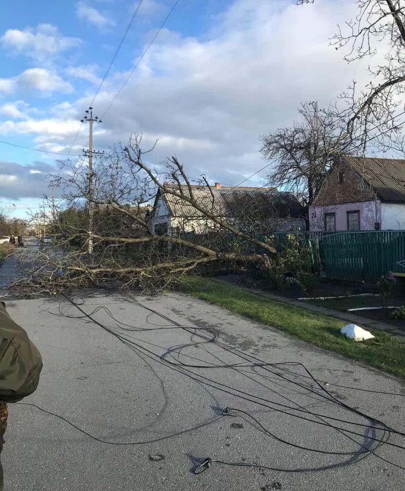 Так, у Кушугумській громаді знеструмлено частину селища Кушугум, через те, що по вул. Феросплавній впало дерево на лінії електропередач.