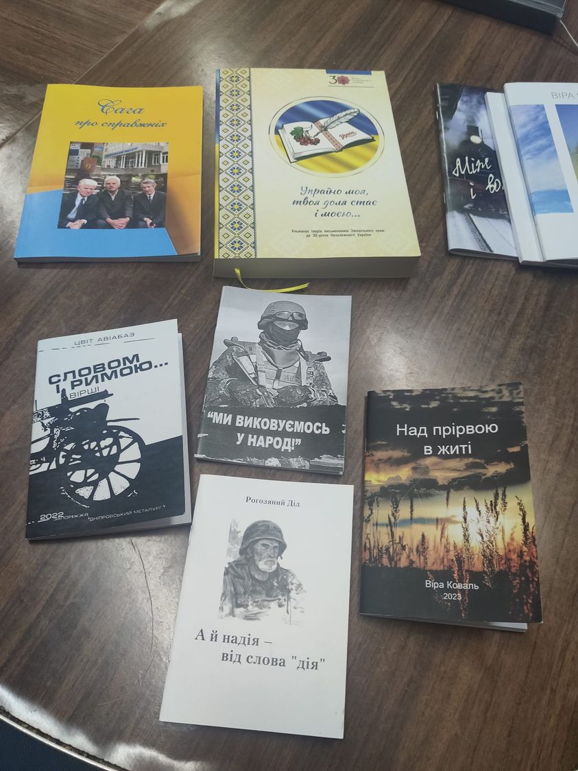 Ольга Стадніченко зробила огляд нового книжкового поповнення від запорізьких митців. Так, першою вийшла збірка «Ми виковуємося у народ», до якої кожен запорізький поет надав по одному віршу. Тут уже у творах застиг суворий подих війни.