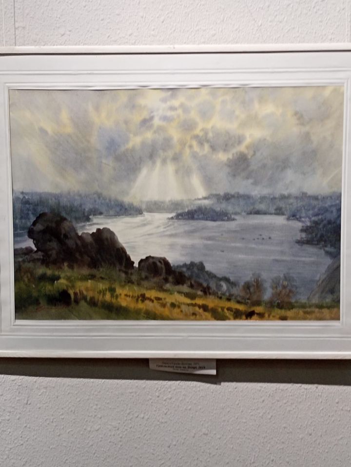 Приковують погляд картини з видами Хортиці, написані до зруйнування греблі Каховської ГЕС. Таким легендарний острів ми вже не побачимо.