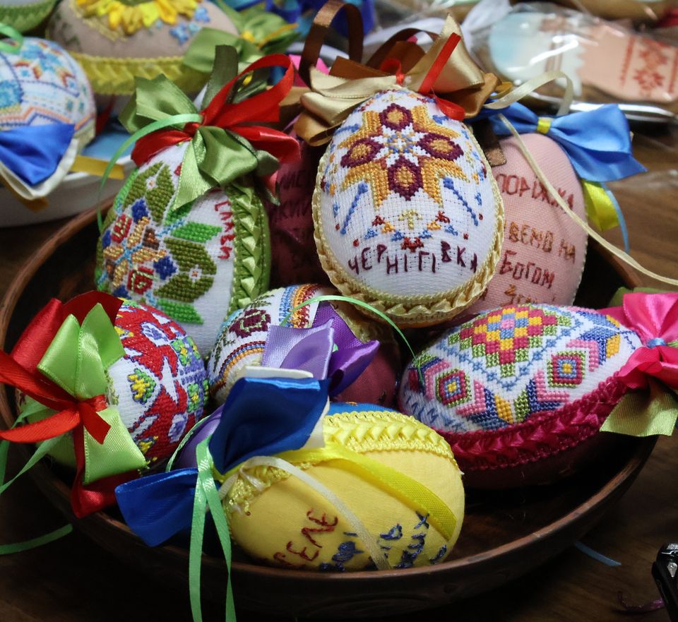 Волонтерка Віра Лобач створила одразу 20 неповторних вишитих писанок, а викладачка Лідія Лелека вишила свої роботи бісером.