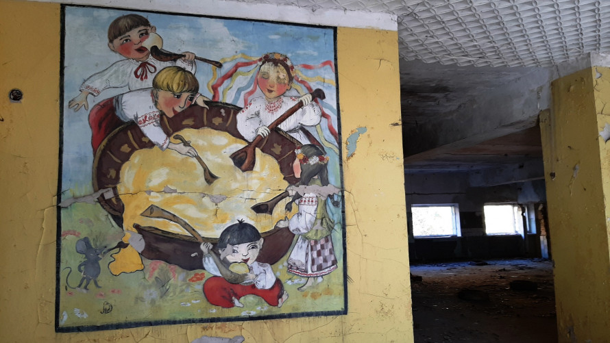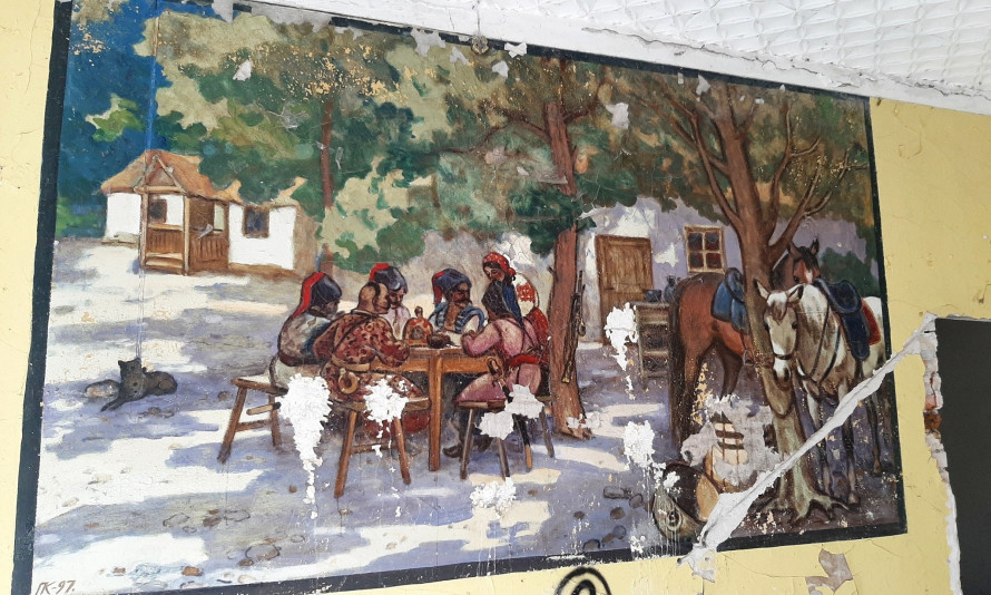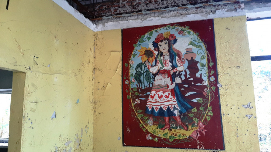 “Пішов у ліс, а натрапив на «галерею мистецтв»”, – написав Кємєнов, який і зробив світлини. На них можна побачити фрески, виконані в українському стилі з різними сюжетними лініями. Картини зображають звичайний український побут: є портрет дівчини в національному одязі з різнобарвним вінком, далі – родина, яка сидить за столом біля хати та, очевидно, обідає, діти. На малюнках також є різні тварини.