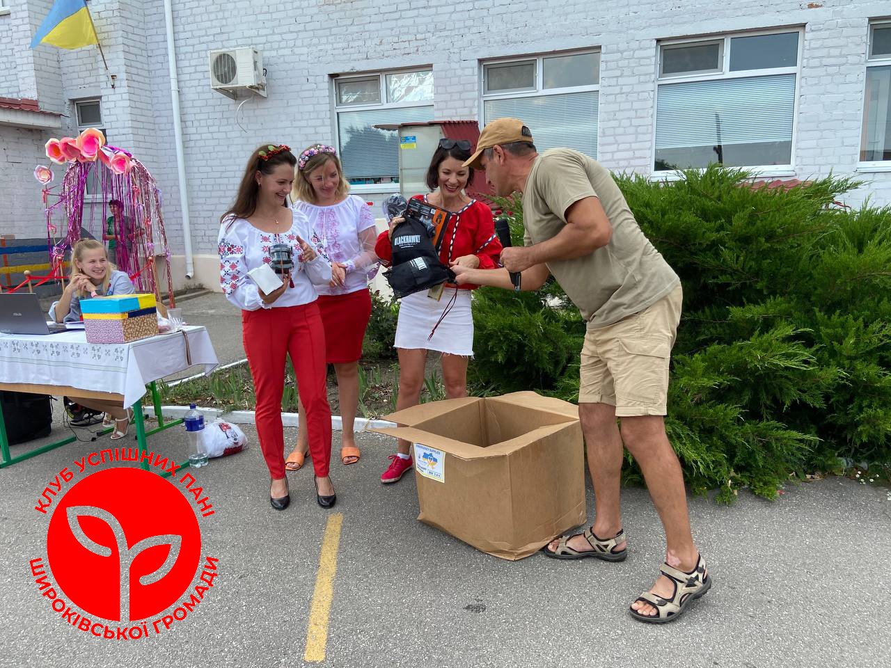 У п’ятницю, 19 серпня, в селі Новопетрівка відбувся черговий Благодійний ярмарок від Клубу успішних пані Широківської ОТГ. Захід традиційно підтримали голова громади Денис Коротенко й партнери Клубу з Агенції сталого розвитку “Хмарочос” Ірина та Сергій Ткаченки. На ярмарку вдалося зібрати 45 800 грн, тепловізор та цілий ящик приладдя для бійців ЗСУ.