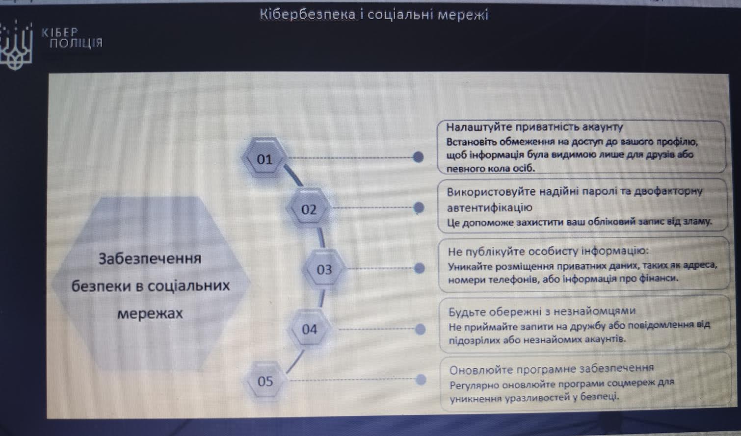 * Не публікуйте особисту інформацію. Будьте обережні з незнайомцями. Не приймайте запити на дружбу від підозрілих осіб.
