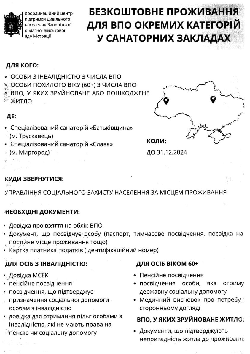 Санаторії “Батьківщина” та “Слава” приймуть людей, постраждалих від війни