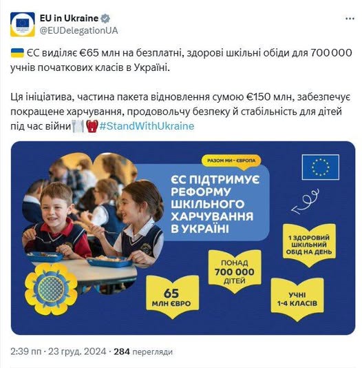 У цей непростий час Євросоюз висловив свою непохитну підтримку як Україні в цілому, так і українській молоді. Одним із ключових пріоритетів Європейського Союзу є формування системи освіти в Україні, гармонізованої зі стандартами ЄС. Це передбачає впровадження сучасних навчальних програм, комфортні умови навчання та рівні можливості для всіх учнів. ЄС давно і послідовно сприяє реалізації стратегічних пріоритетів в освітній сфері України, підтримуючи середню та вищу освіту, професійно-технічне навчання та оволодіння новими навичками. Інвестиції європейських партнерів в освіту – це внесок у майбутнє України та її відбудову. Нині понад 700 тисяч юних українців здобувають освіту у школах країн ЄС. Наші міжнародні партнери створюють всі умови для збереження їхнього зв’язку з Україною, що є важливим для подальшого повернення молоді для відбудови Батьківщини.