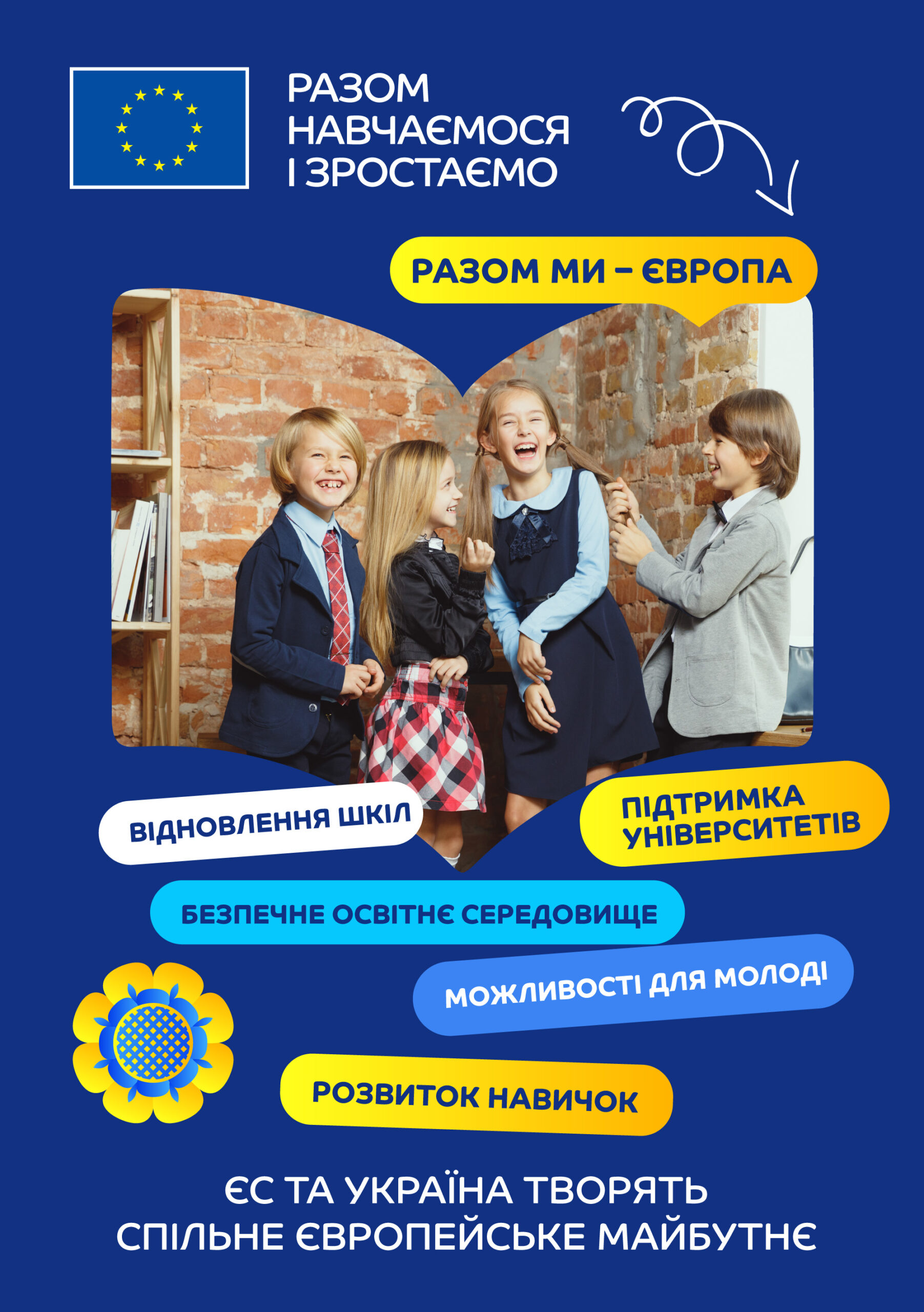 Всеукраїнська комунікаційна кампанія «Разом навчаємось і зростаємо» стартувала у вересні 2024 року в межах фестивалю «Книжкова країна» на ВДНГ, де працював організований ЄС Освітній простір, який відвідали близько 14 000 дітей та дорослих.
