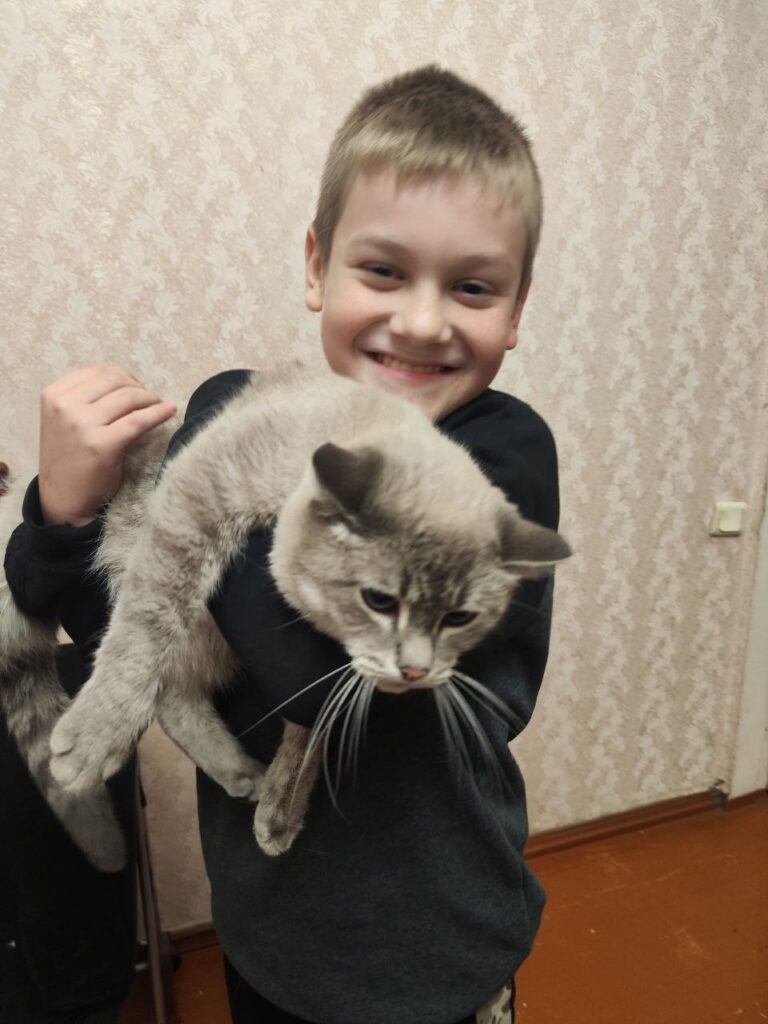 Спершу вона насторожено звикала до нового дому. Цілих пів року онуки здобували її довіру — іграшками, смаколиками, теплом. І нарешті кішка обрала своїх — двох хлопчиків восьми й десяти років. Тепер вона спить із ними, грається, а під час тривог ходить по кімнатах і нявчить, закликаючи всіх іти «за дві стінки».